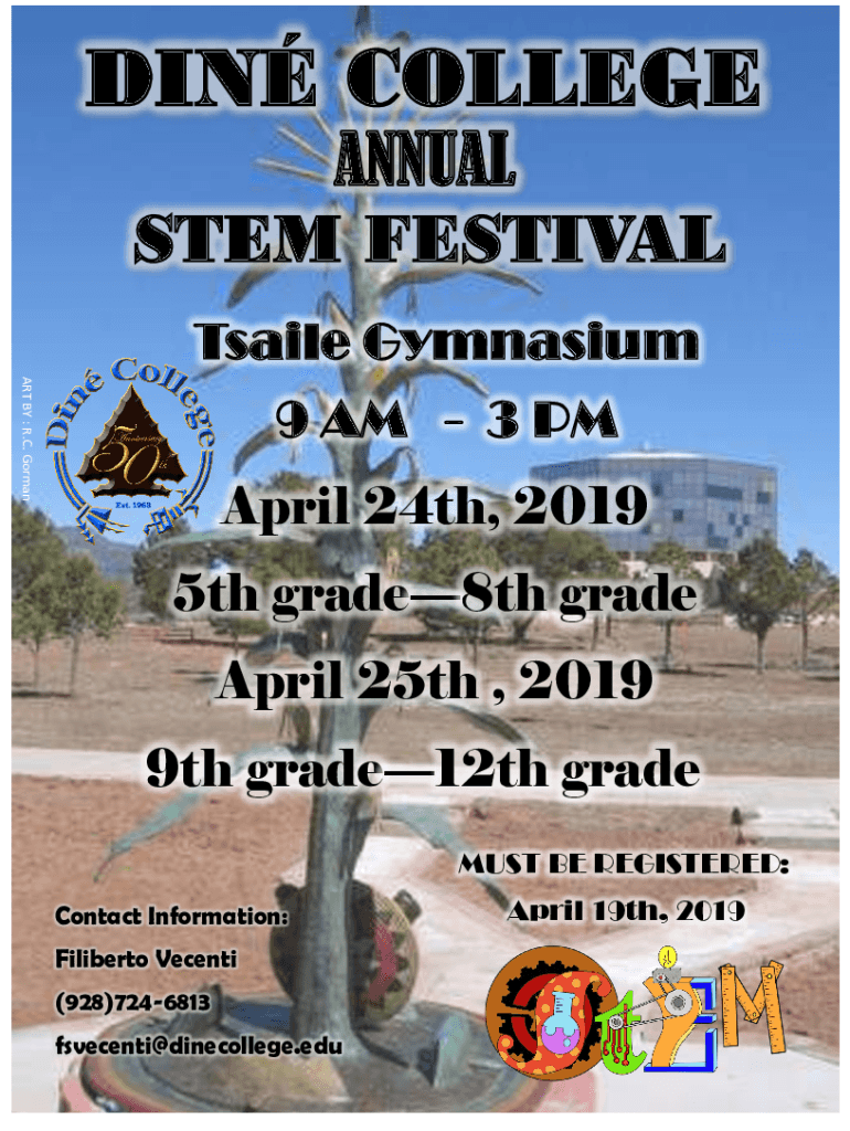 DIN COLLEGE ANNUAL STEM FESTIVAL Sale Gymnasium ART BY : R.C. Gorman9 AM 3 PM April 24th, 2019 5th grade8th grade April 25th, 2019 9th grade12th grade MUST BE REGISTERED: Contact Information: Filiberto