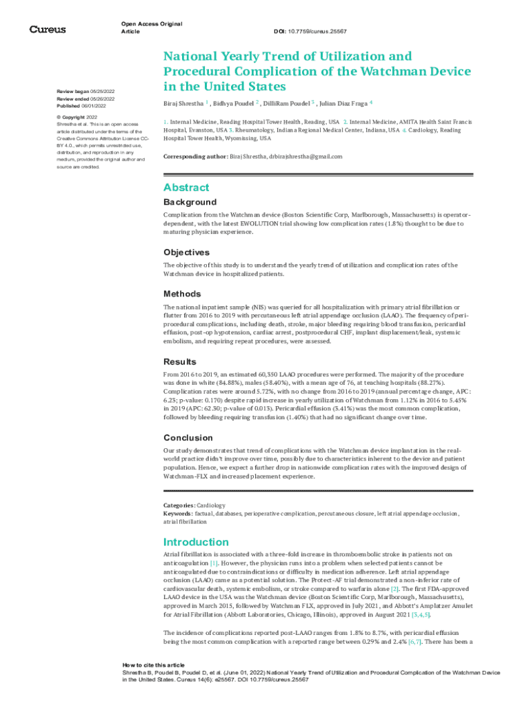 Get the free National Yearly Trend of Utilization and Procedural ... - Cureus