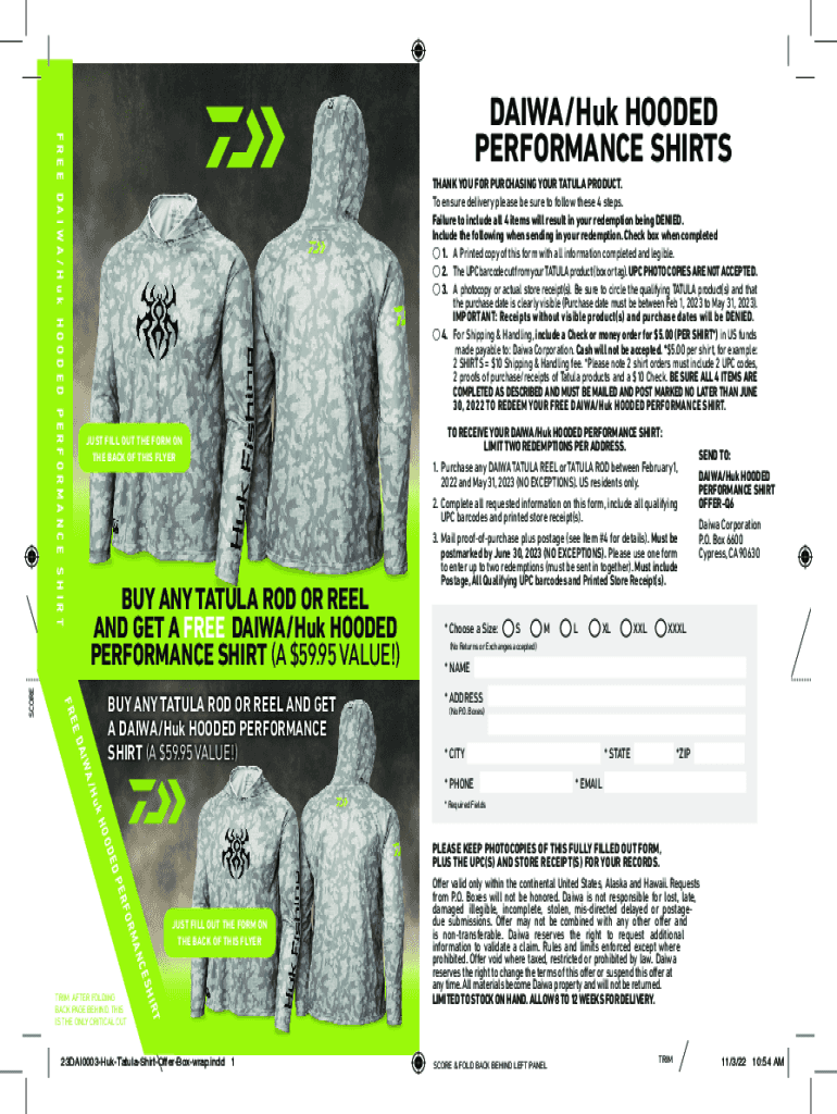 Information such as the date of purchase, location of purchase, and cost of the fishing rod must be reported on the buy any Tatula rod form.