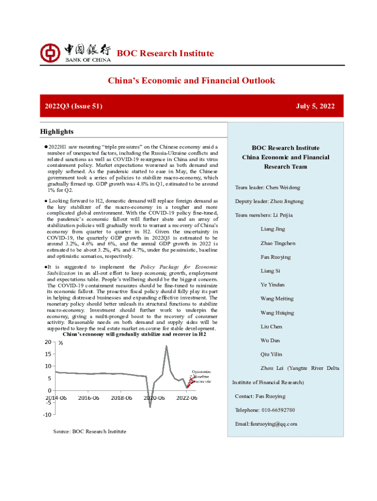 BOC Research Institute China's Economic and Financial Outlook 2022Q3 (Issue 51)July 5, 2022Highlights 2022H1 saw mounting triple pressures on the Chinese economy amid number of unexpected factors,