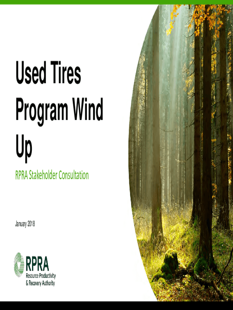 Used Tires Program Wind Up PRA Stakeholder Consultation January 2018Webcast interface ask a question at any time during the presentation or for technical assistance, type your question in the text