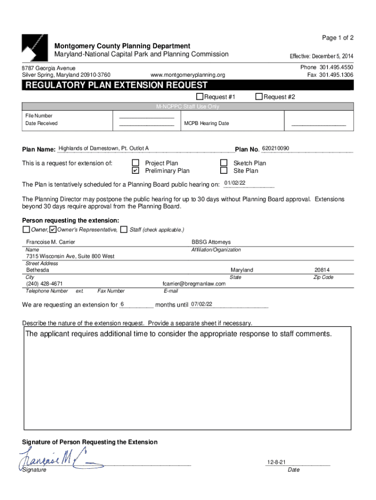 Request to extend the regulatory review period from January 2,