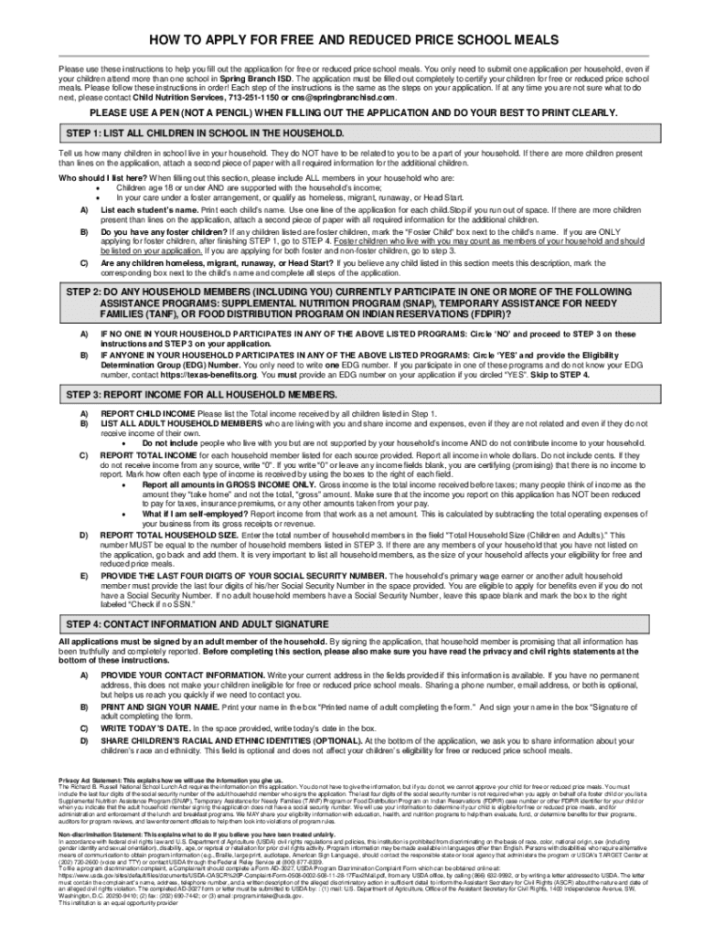 HOW TO APPLY FOR FREE AND REDUCED PRICE SCHOOL MEALS Please use these instructions to help you fill out the application for free or reduced price school meals. You only need to submit one application