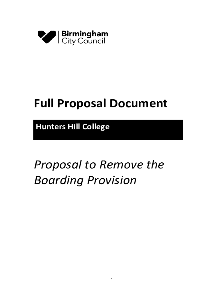 FullProposalDocument HuntersHillCollege ProposaltoRemovethe BoardingProvision 1Introduction Birmingham City Council, as the Local Authority for Birmingham, is consulting on a proposal to makechangestoHuntersHillCollegewhichisoneofBirminghams27