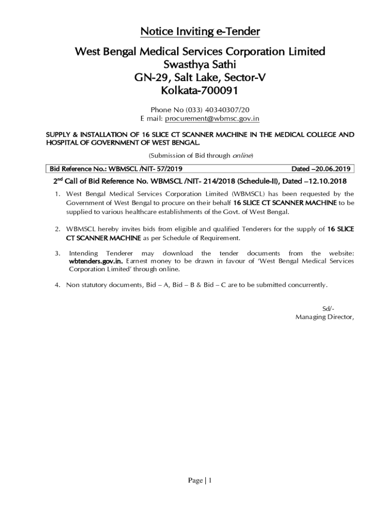 Get the free Notice Inviting e-Tender West Bengal Medical ...