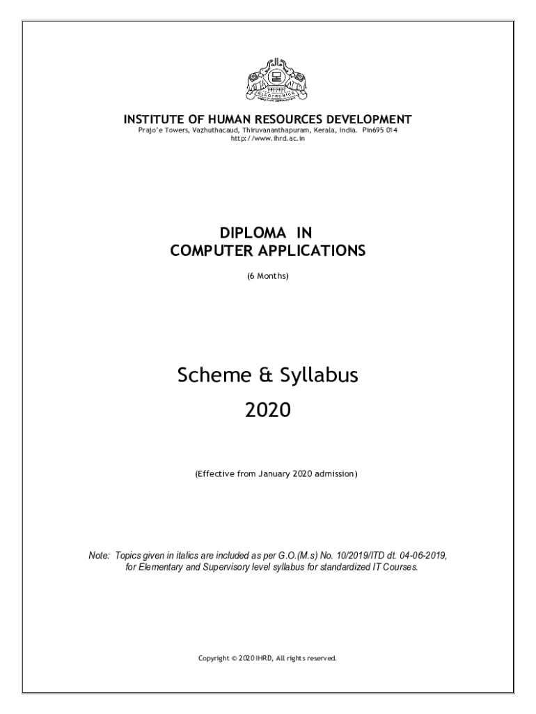 INSTITUTE OF HUMAN RESOURCES DEVELOPMENT Praise Towers, Vazhuthacaud, Thiruvananthapuram, Kerala, India. Pin695 014 http://www.ihrd.ac.inDIPLOMA IN COMPUTER APPLICATIONS (6 Months)Scheme & Syllabus