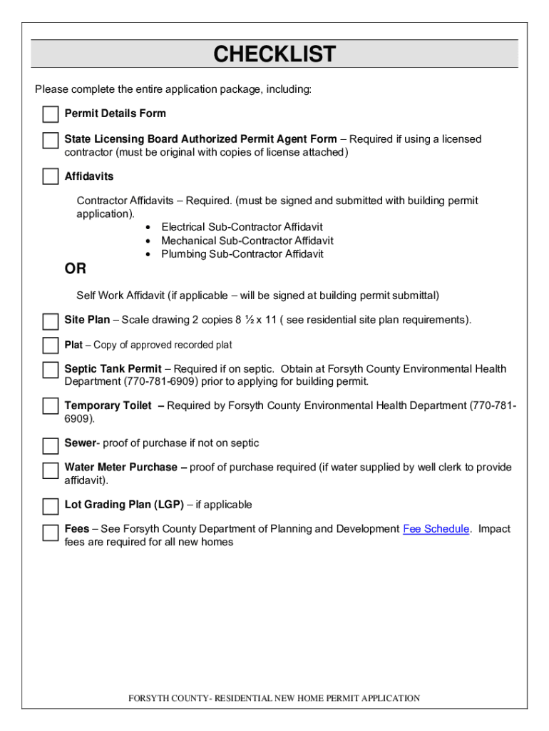 Forsyth County Department of Planning & Community Development110 E. Main Street, Suite 100 | Cumming, Georgia 30040 | (770) 7812115 | forsythco.com___RESIDENTIAL NEW HOME PERMIT PACKETCHECKLIST Please