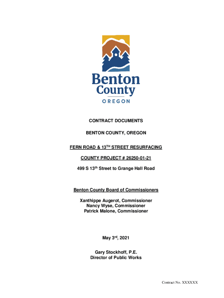 CONTRACT DOCUMENTS BENTON COUNTY, OREGON FERN ROAD & 13TH STREET RESURFACING COUNTY PROJECT # 262500121 499 S 13th Street to Grange Hall Road Benton County Board of Commissioners Xanthippe Auger,