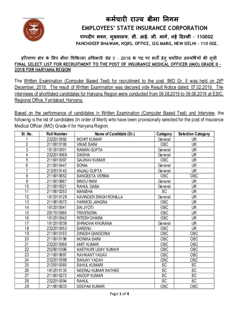 EMPLOYEES STATE INSURANCE CORPORATION, . , 110002 SANDEEP SHAWN, HERS. OFFICE, CIG MARY, NEW DELHI 110 002. II 2018