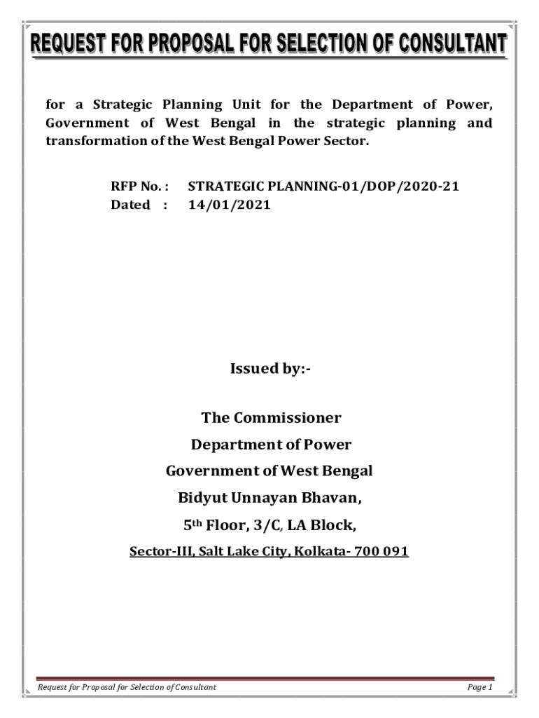 For a Strategic Planning Unit for the Department of Power, Government of West Bengal in the strategic planning and transformation of the West Bengal Power Sector. RFP No. Dated :STRATEGIC PLANNING01/DOP/202021