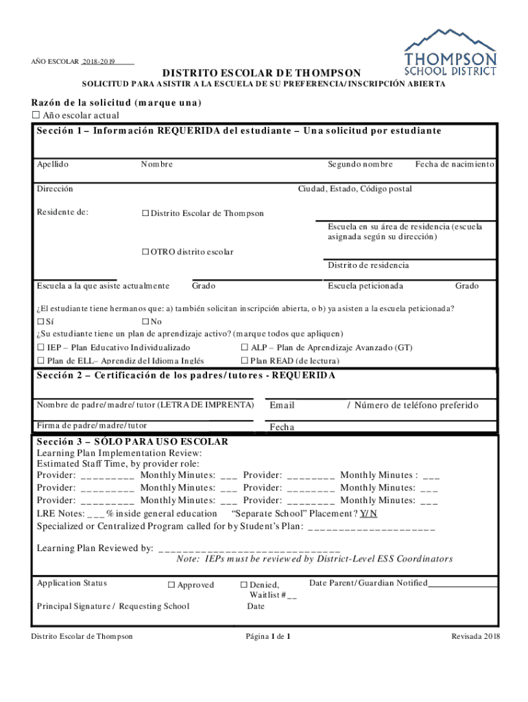 AO ESCOLAR 20182019DISTRITO ESCOLAR DE THOMPSON