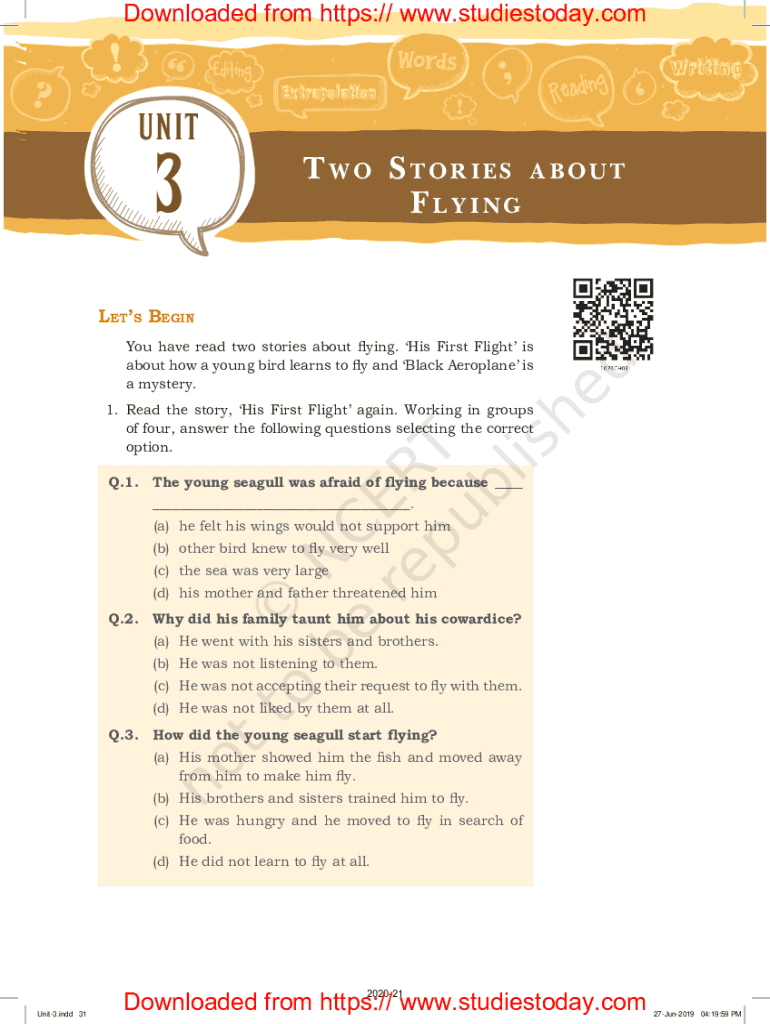 Downloaded from https:// www.studiestoday.com;?UNIT3T to S Tories about F ringlets BeginYouhavereadtwostoriesaboutflying. HisFirstFlightisabout how a young bird learns to fly and Black Airplane ISA