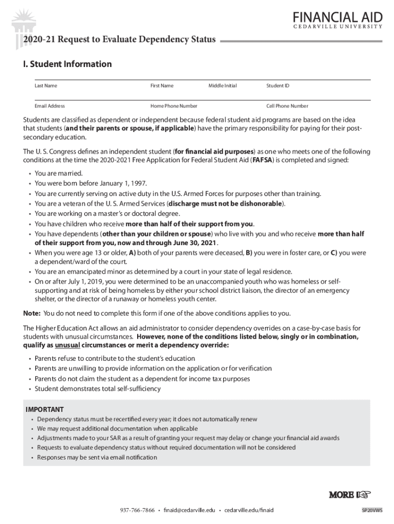 202021 Request to Evaluate Dependency Status