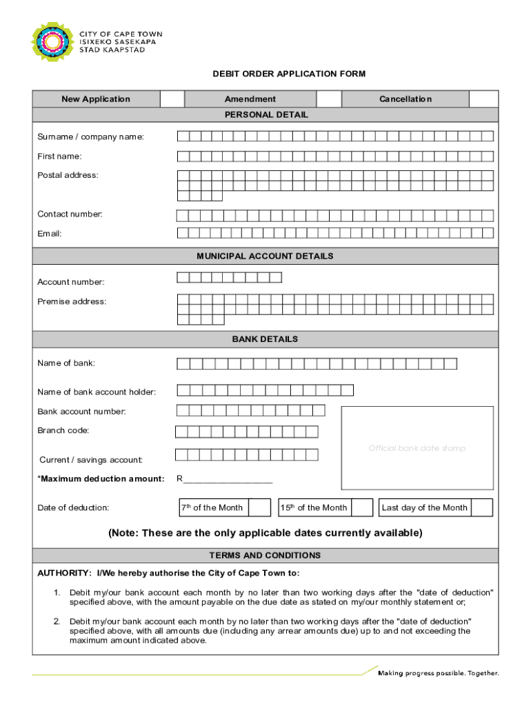 Get the free debit order application form - City of Cape Town