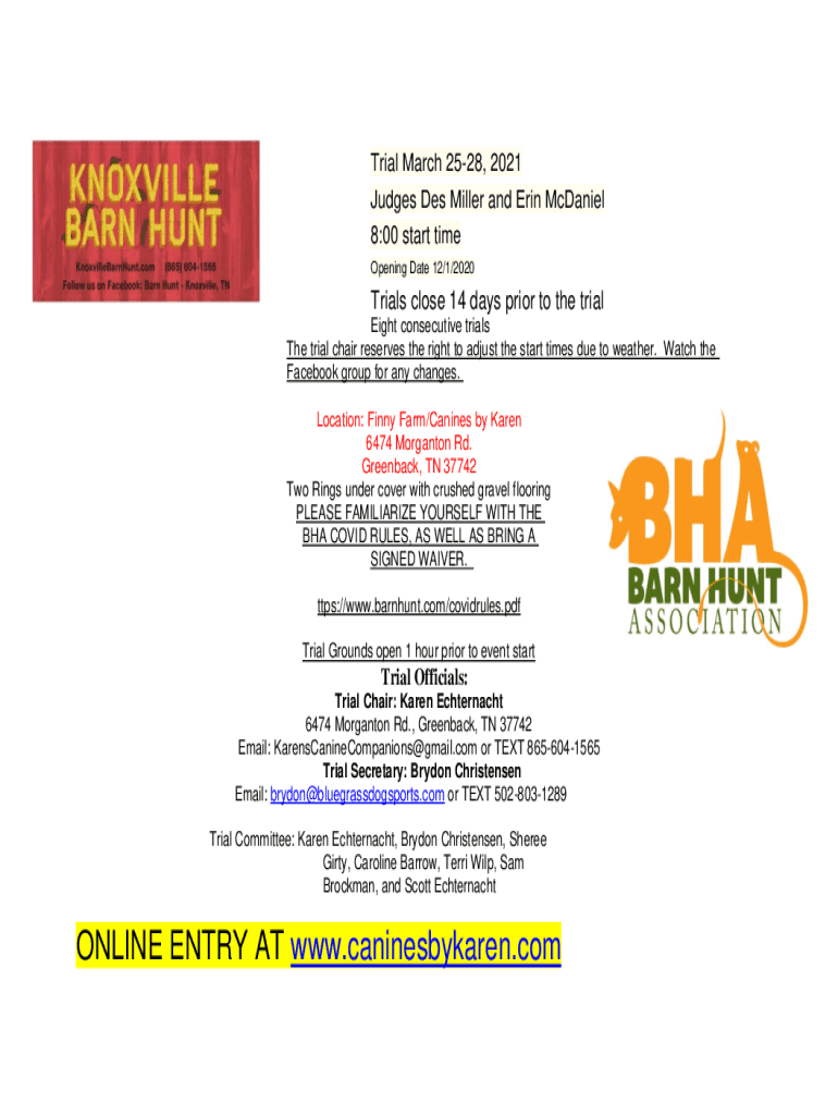 Trial March 2528, 2021 Judges DES Miller and Erin McDaniel 8:00 start time Opening Date 12/1/2020Trials close 14 days prior to the trial Eight consecutive trials The trial chair reserves the right