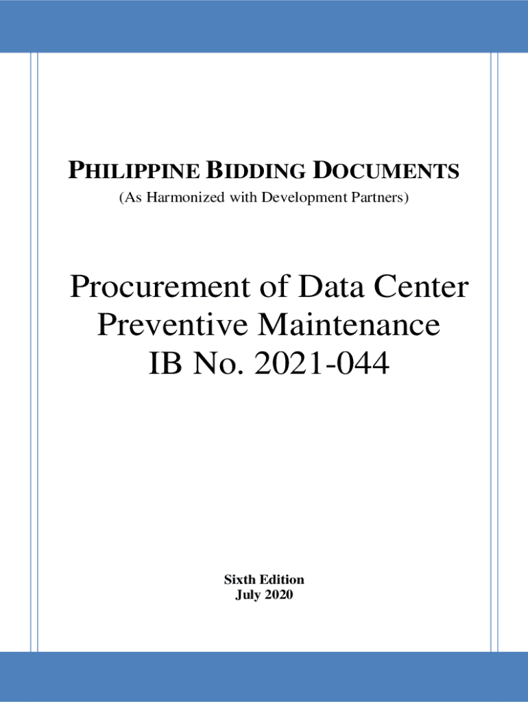 PHILIPPINE BIDDING DOCUMENTS (As Harmonized with Development Partners)Procurement of Data Center Preventive Maintenance IB No. 2021044Sixth Edition July 2020Table of Contents Glossary of Acronyms,
