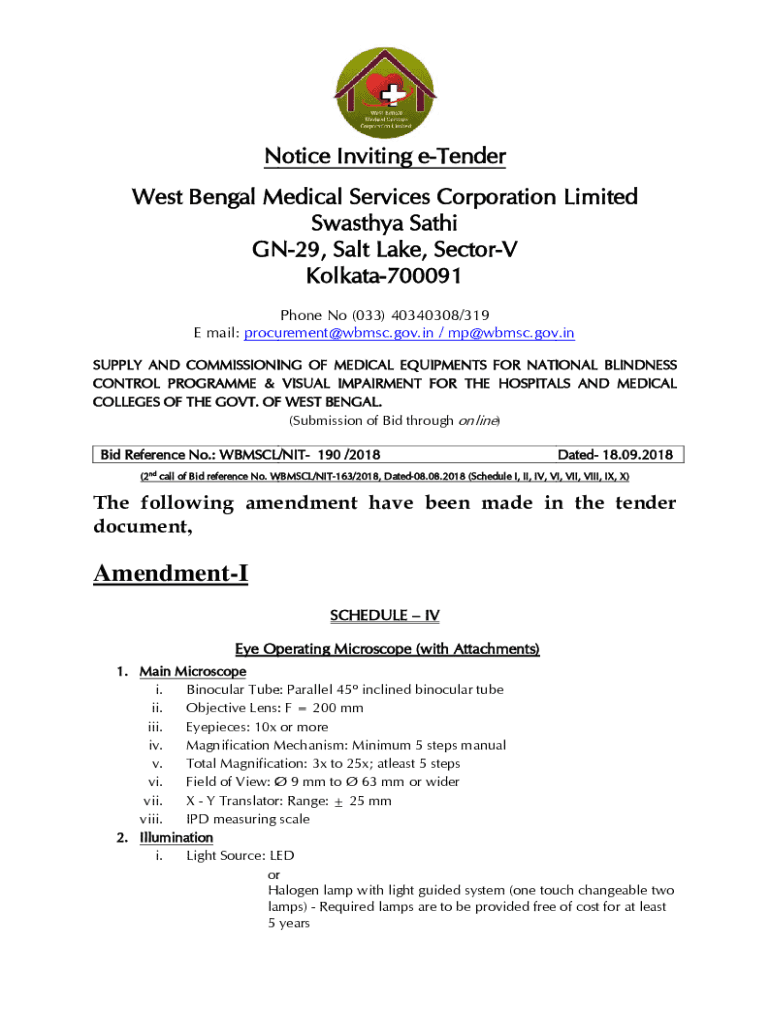 Notice Inviting tender West Bengal Medical Services Corporation Limited Swarthy Sat hi GN29, Salt Lake, Sector Kolkata700091 Phone No (033) 40340308/319 E mail: procurement@wbmsc.gov.in / mp@wbmsc.gov.in