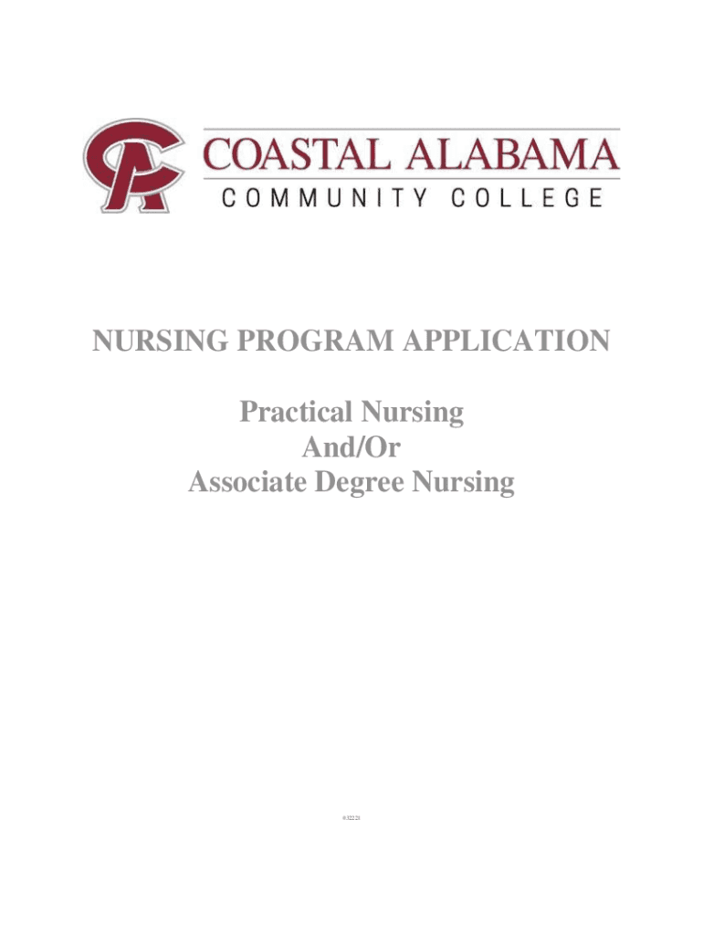 NURSING PROGRAM APPLICATION Practical Nursing And/Or Associate Degree Nursing032221NURSING PROGRAM APPLICATION NAME: Last___First___ MI___ Coastal Alabama Student Number (A Number): ___Date:___ Please