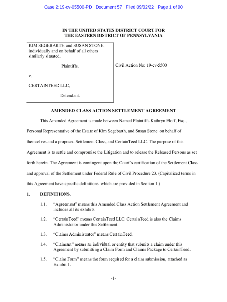 Case 2:19cv05500PD Document 57 Filed 09/02/22-Page 1 of 90IN THE UNITED STATES DISTRICT COURT FOR THE EASTERN DISTRICT OF PENNSYLVANIA KIM SEGEBARTH and SUSAN STONE, individually and on behalf of