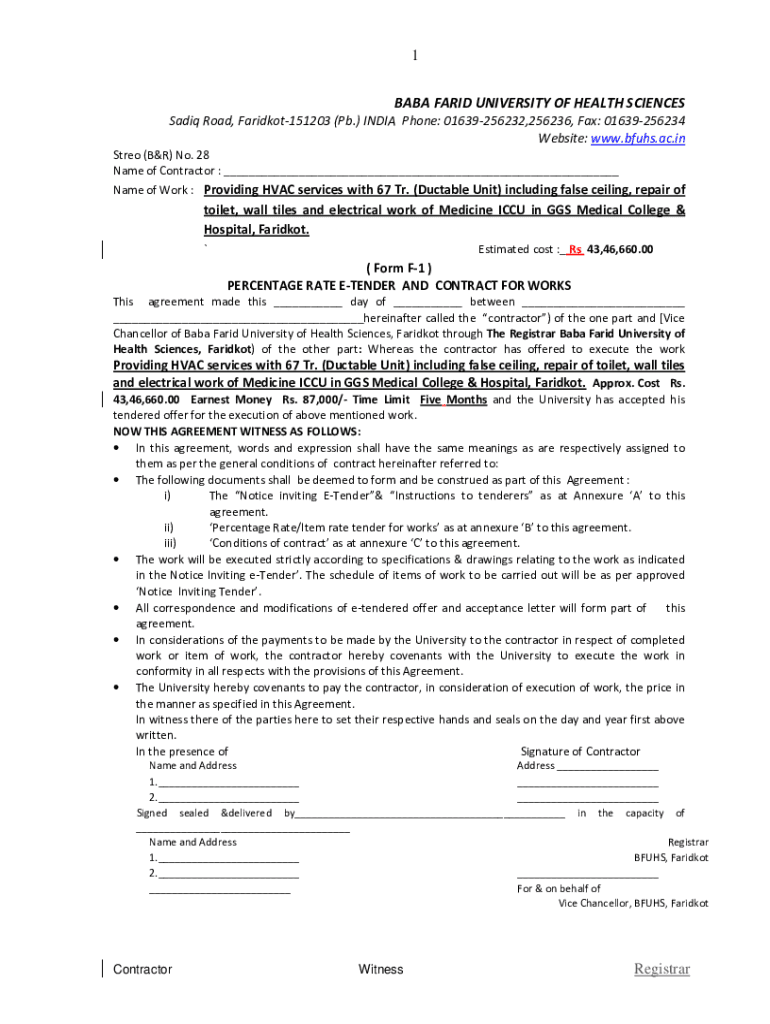 1 BABA FARID UNIVERSITY OF HEALTH SCIENCES Sadiq Road, Faridkot151203 (Pb.) INDIA Phone: 01639256232,256236, Fax: 01639256234 Website: www.bfuhs.ac.in Stereo (B&R) No. 28 Name of Contractor : ___