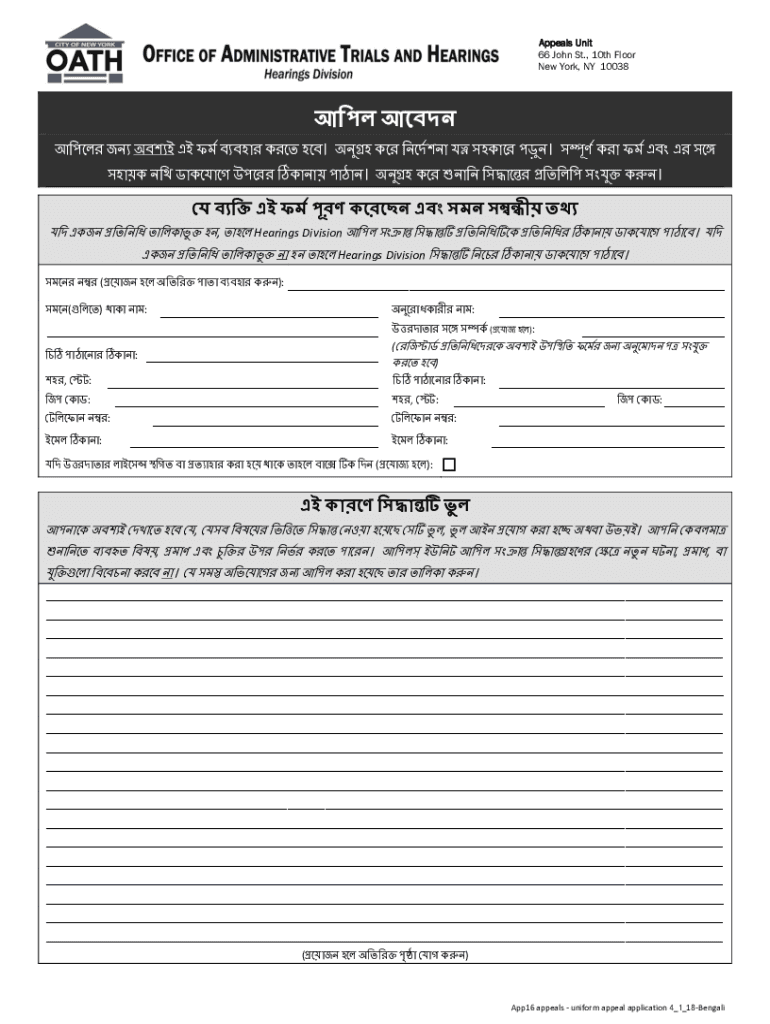Appeals Unit 66 John St., 10th Floor New York, NY 10038