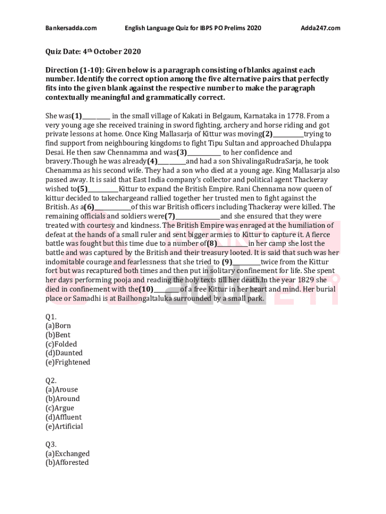 Bankersadda.com English Language Quiz for IPS PO Prelims 2020Adda247.comic Date: 4th October 2020 Direction (110): Given below is a paragraph consisting of blanks against each number. Identify the