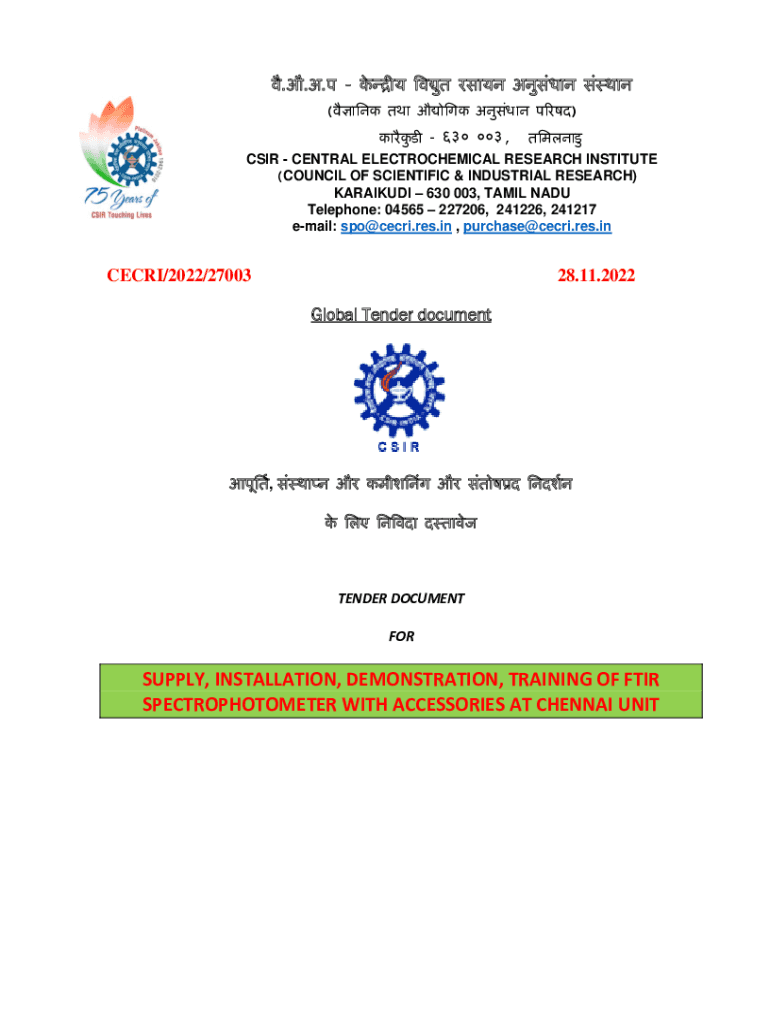 ... (), SIR CENTRAL ELECTROCHEMICAL RESEARCH INSTITUTE (COUNCIL OF SCIENTIFIC & INDUSTRIAL RESEARCH) KARAKUL 630 003, TAMIL NADU Telephone: 04565 227206, 241226, 241217 email: spo@cecri