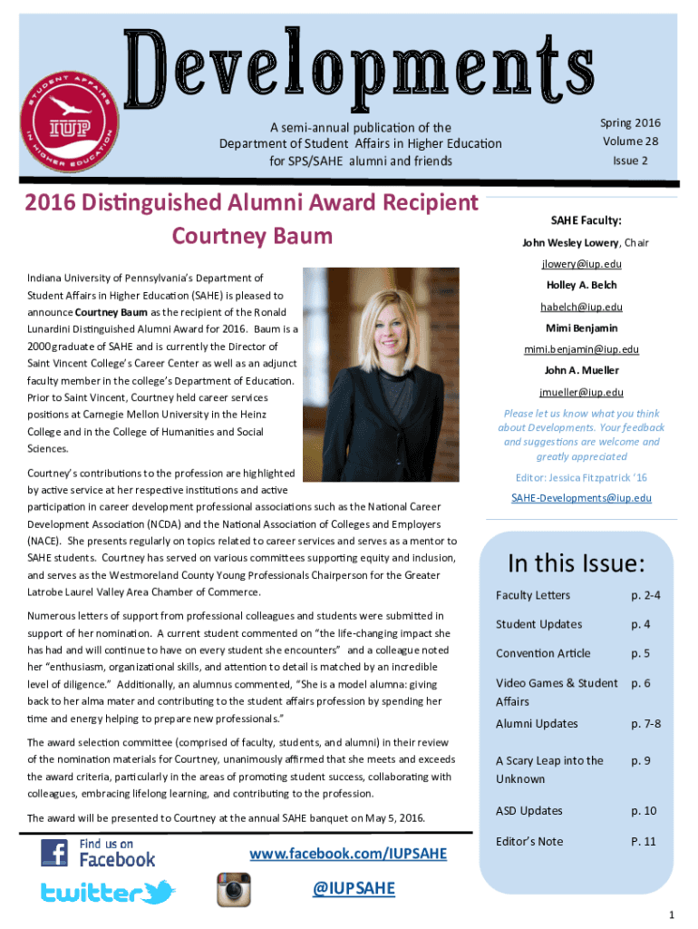 for SPS/SHE alumni and friends2016 Distinguished Alumni Award Recipient