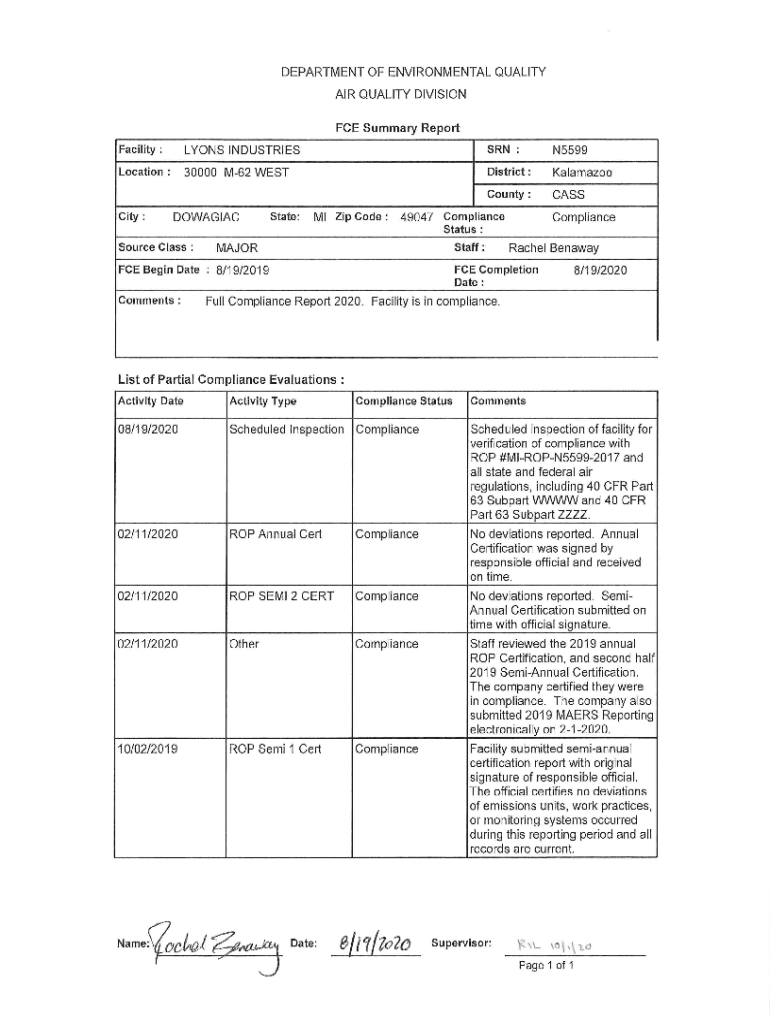 Facility:LYONS INDUSTRIES :N5599Location:30000 M62 Redistrict:KalamazooCounty:Capacity:DOWAGIACState:Ml Zip Code:49047 ComplianceComplianceStatus: