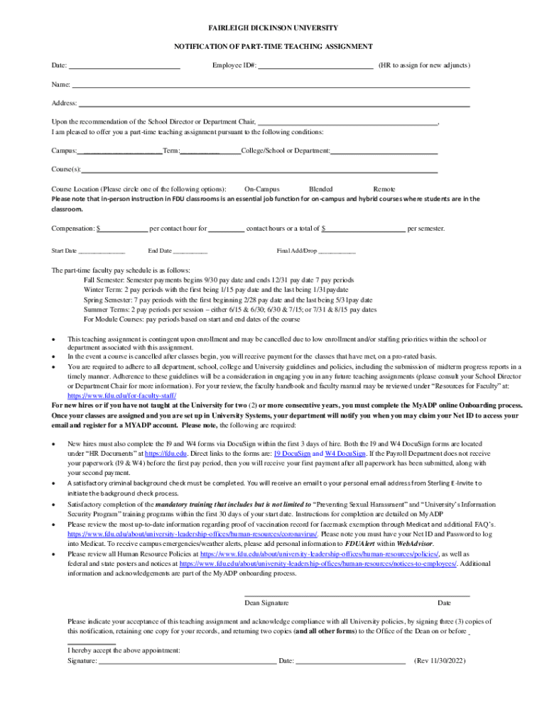 Edit your part-time-teaching-assignment-pdf form online