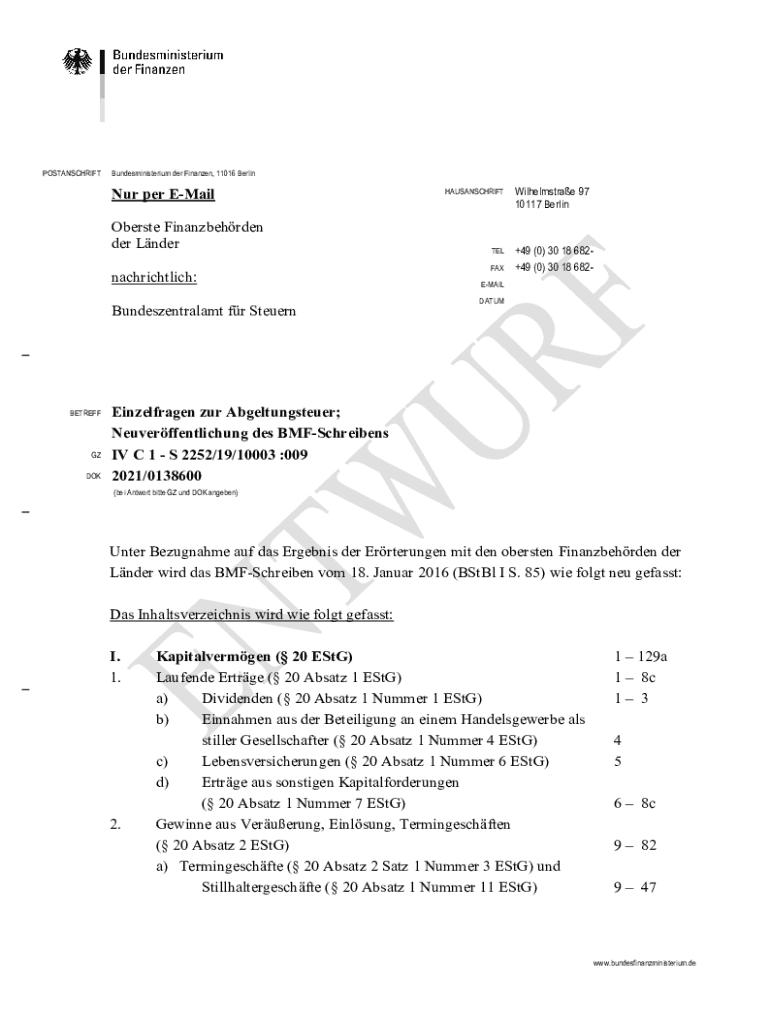 POSTANSCHRIFTBundesministerium her Finance, 11016 Berliner per Email