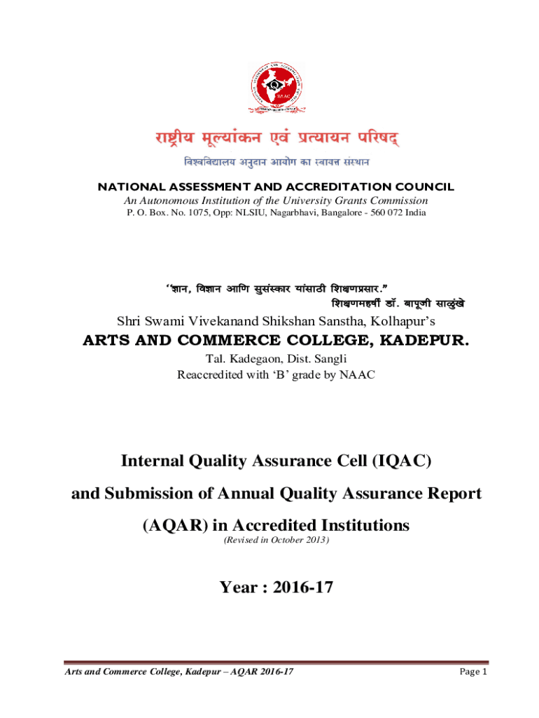 NATIONAL ASSESSMENT AND ACCREDITATION COUNCIL