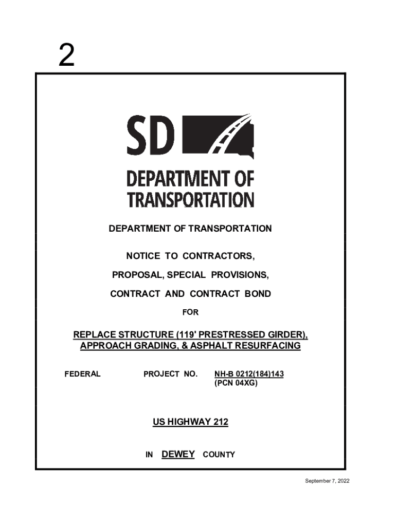 2DEPARTMENT OF TRANSPORTATION DEPARTMENT OF TRANSPORTATION NOTICE TO CONTRACTORS, PROPOSAL, SPECIAL PROVISIONS, CONTRACT AND CONTRACT BOND FIREPLACE STRUCTURE (119\' PRESTRESSED GIRDER), APPROACH