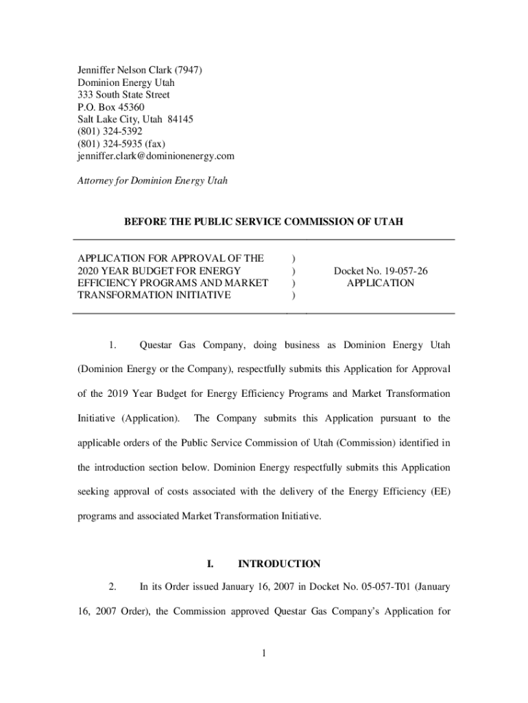 Jennifer Nelson Clark (7947) Dominion Energy Utah 333 South State Street P.O. Box 45360 Salt Lake City, Utah 84145 (801) 3245392 (801) 3245935 (fax) jenniffer.clark@dominionenergy.com Attorney for