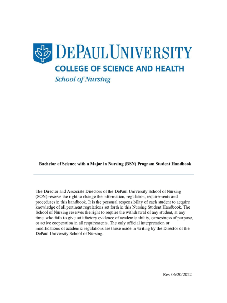 Bachelor of Science with a Major in Nursing (BSN) Program Student Handbook Director and Associate Directors of the DePaul University School of Nursing