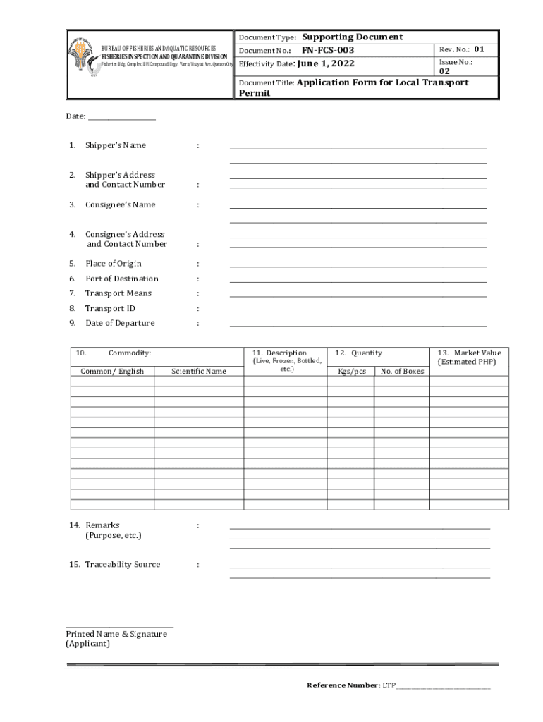 Supporting Document No.: FNFCS003 Effectivity Date: June 1, 2022, Document Type:BUREAU OF FISHERIES AND AQUATIC RESOURCES FISHERIES INSPECTION AND QUARANTINE DIVISIONFisheries Bldg. Complex, BPI Compound,