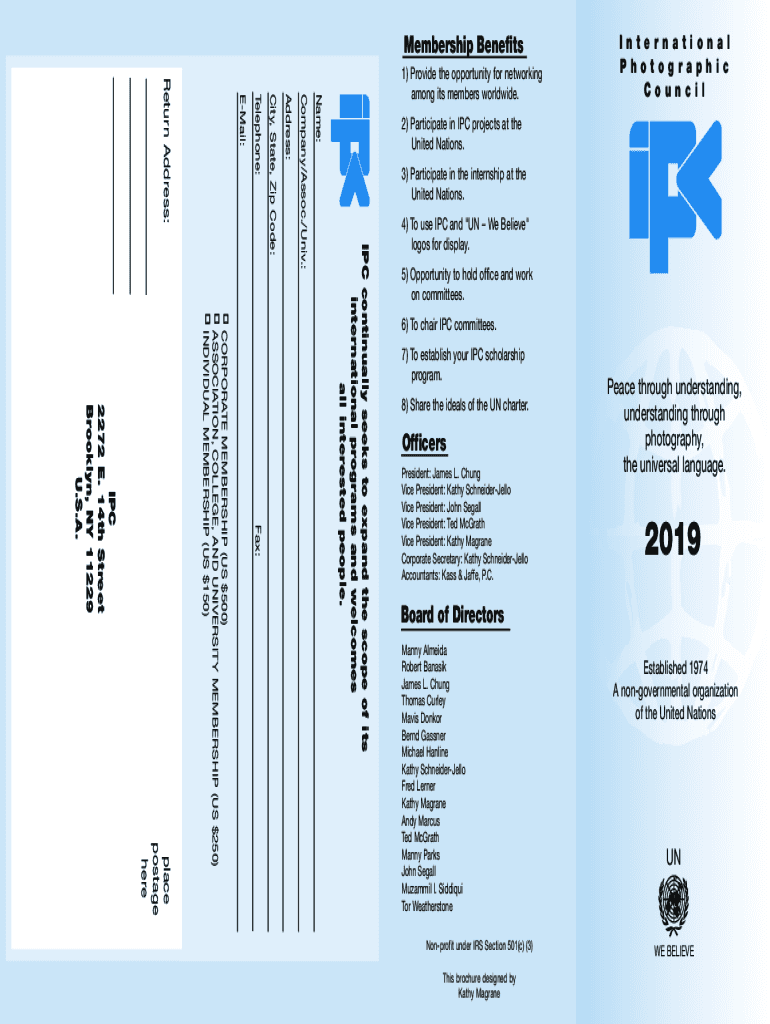1) Provide the opportunity for networking among its members worldwide. Name:I n t e r n a t i o n an l P h o t o g r a p h i c C o u n c i l2) Participate in IPC projects at the United Nations. 3)