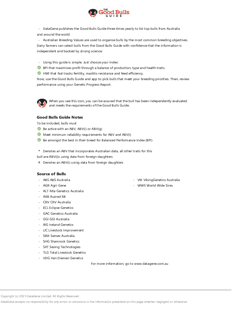 Get the free Good Bulls Guide Notes Source of Bulls - DataGene