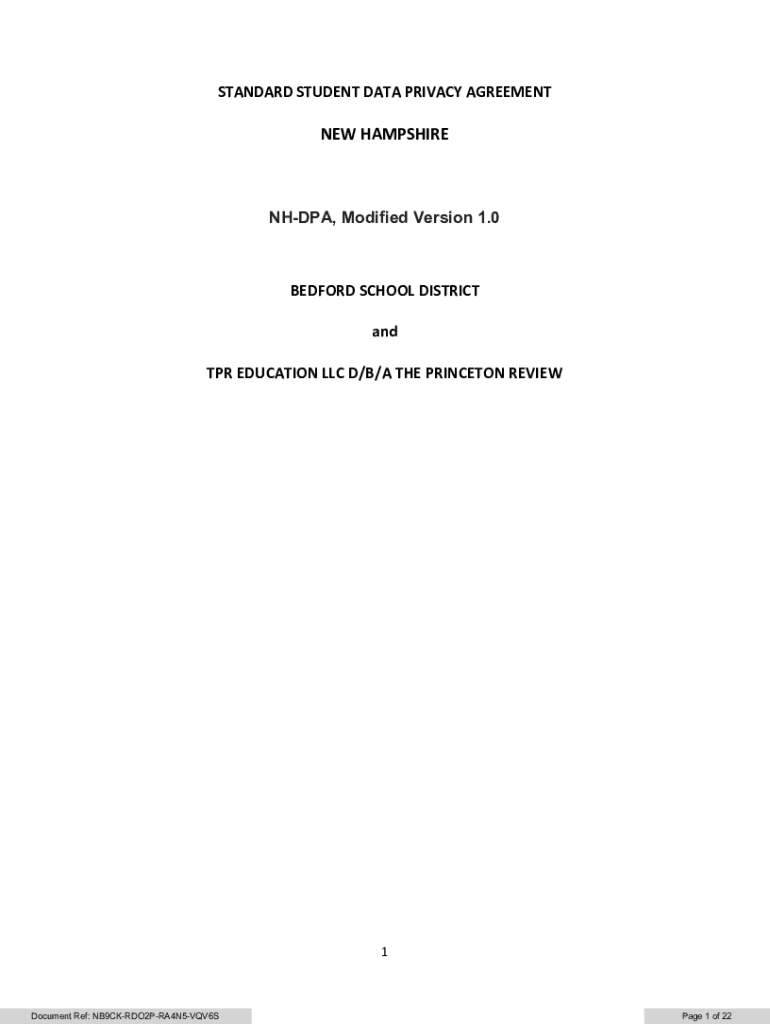 STANDARD STUDENT DATA PRIVACY AGREEMENT HAMPSHIRENHDPA, Modified Version 1.0BEDFORD SCHOOL DISTRICT and TPR EDUCATION LLC D/B/A PRINCETON REVIEW1Document Ref: NB9CKRDO2PRA4N5VQV6SPage 1 of 22This