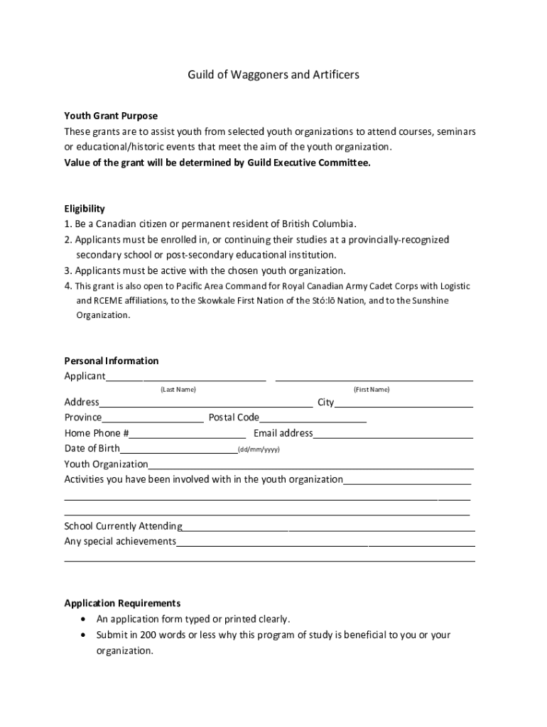 How to fill out guild-of-waggoners-and-artificers-youth-grant-application