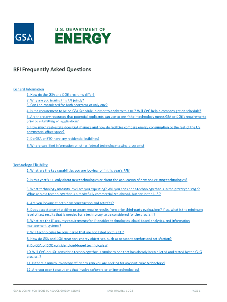 RFI Frequently Asked Questions General Information 1. How do the GSA and DOE programs differ? 2. Why are you issuing this RFI jointly? 3. Can I be considered for both programs or only one? 4. Is it
