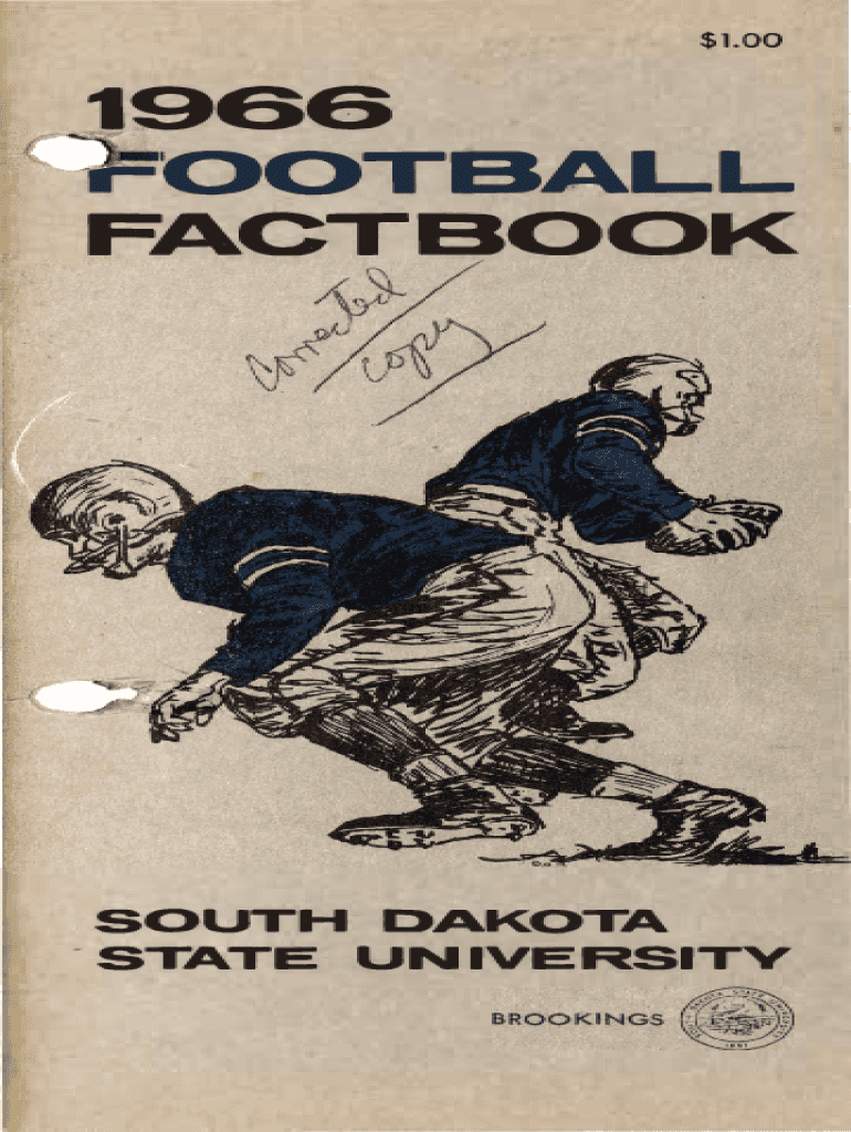$1.001966 football FACTBOOKSOUTH DAKOTA STATE UN IVERSITVTO THE PRESS, RADIO AND TV This bk is designed to aid you as you write and talk about the 1966 South Dakota State University football team.