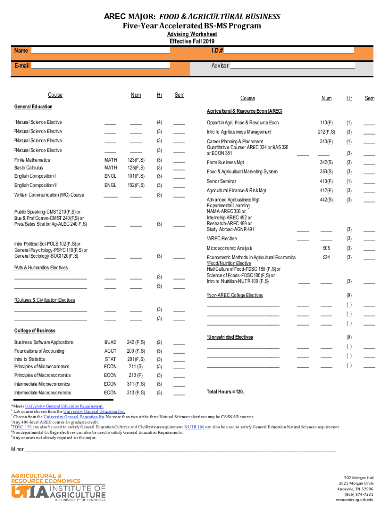 Get the free AREC MAJOR: FOOD & AGRICULTURAL BUSINESS Five-Year ...