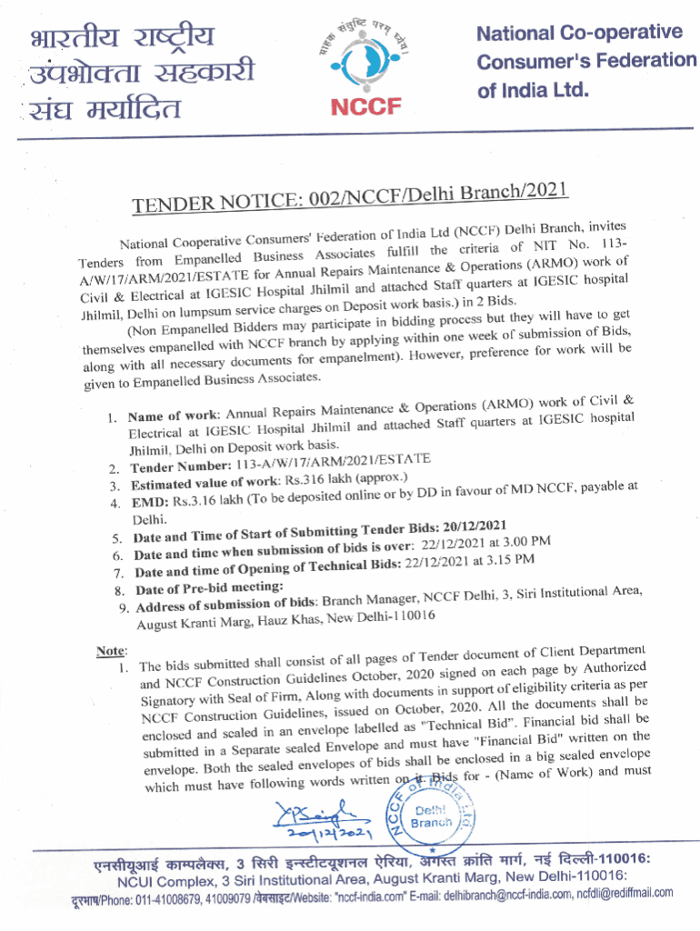 1NCCF HO Delicate: 29th Sep, 2020Ref. No: CCF/HO/BUS/202021/To, The Branch NCCFManagersSub: System Improvement Measures for Construction Works/Projects taken up by Accede: 1. 2.CVC letter no. IE/201718/ENE/359415