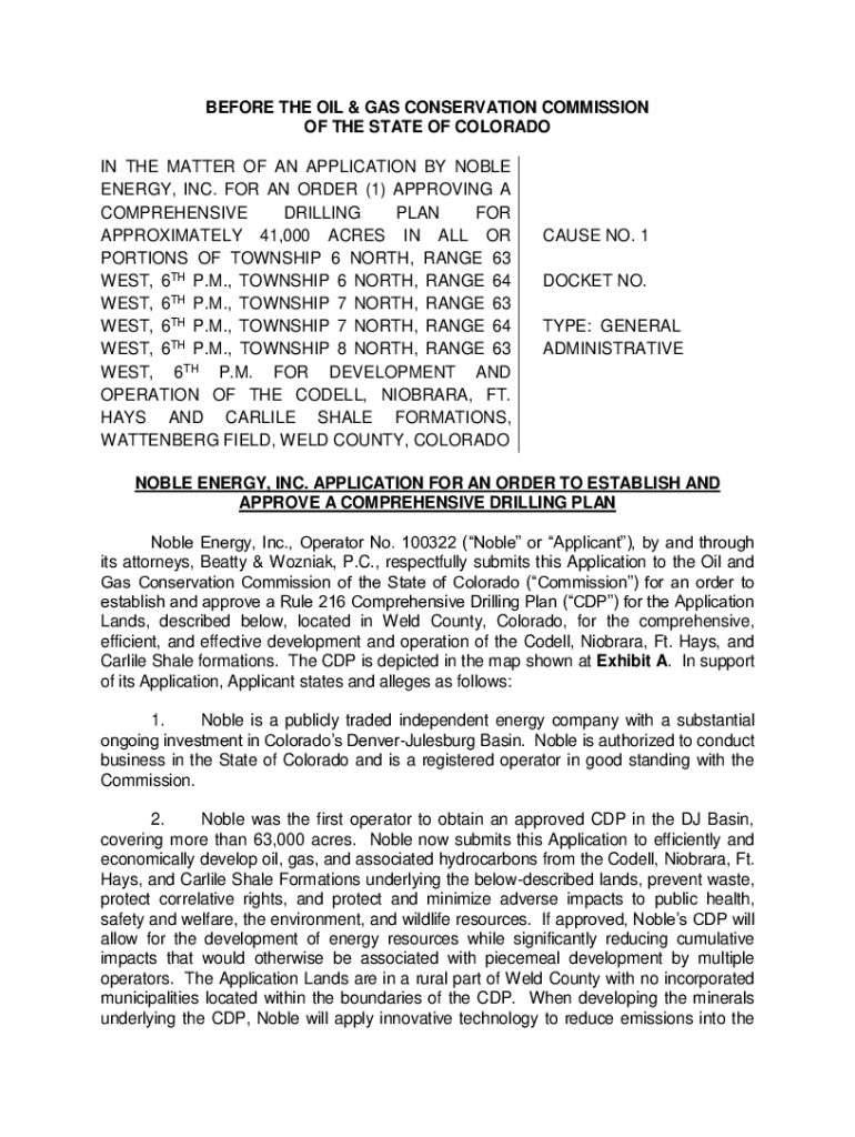 Get the free Noble Wells Ranch CDP Application - cogcc state co