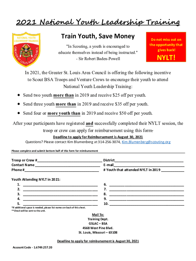 2021 National Youth Leadership Training Train Youth, Save Money \” In Scouting, a youth is encouraged to educate themselves instead of being instructed.\” Sir Robert BadenPowellDo not miss out