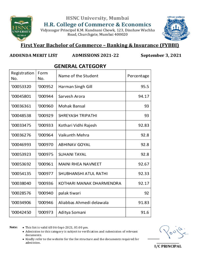Road, Churchgate, Mumbai 400020First Year Bachelor of Commerce Banking & Insurance