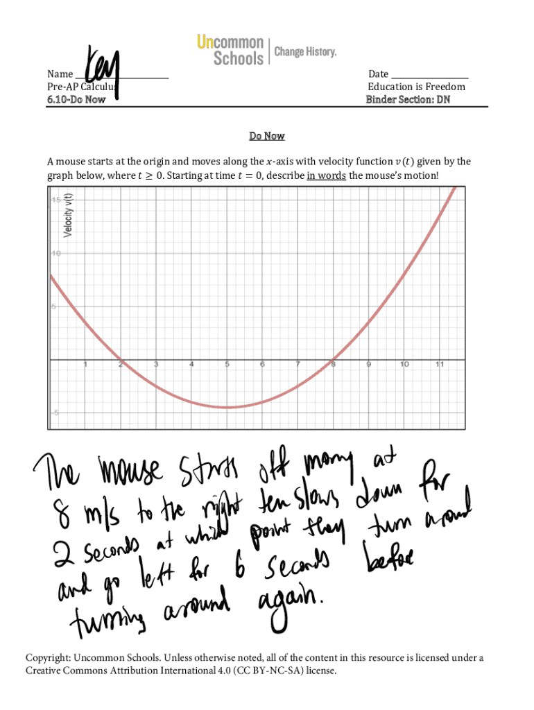 Name ___ Prep Calculus 6.10Do Notate ___ Education is Freedom Binder Section: DN Do Now mouse starts at the origin and moves along the axis with velocity function () given by the graph below, where