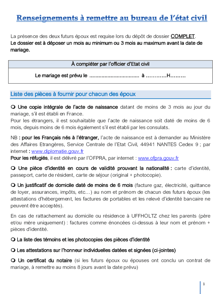 La presence DES DEU future pour est require loss Du dpt DE dossier COMPLETE. Le dossier est pose run moist AU minimum of 3 moist AU maximum savant la date DE marriage. Computer par officer deceit