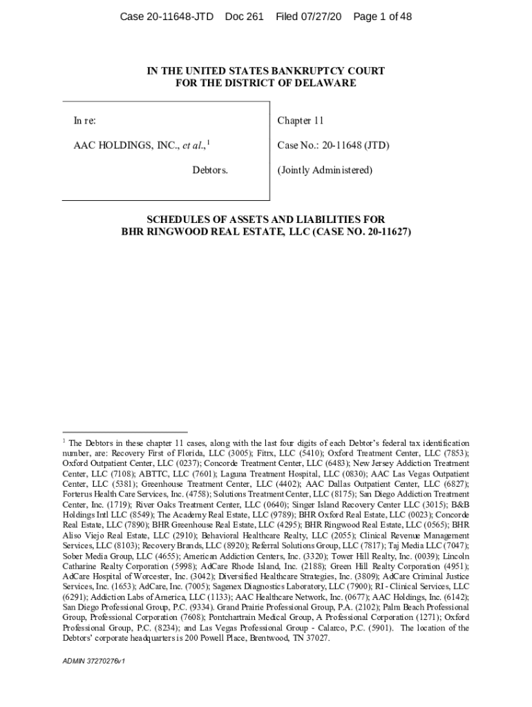 Case 2011648JTDDoc 261Filed 07/27/20Page 1 of 48IN THE UNITED STATES BANKRUPTCY COURT FOR THE DISTRICT OF DELAWARE In re:Chapter 11AAC HOLDINGS, INC., et al.,1Case No.: 2011648 (LTD)Debtors.(Jointly